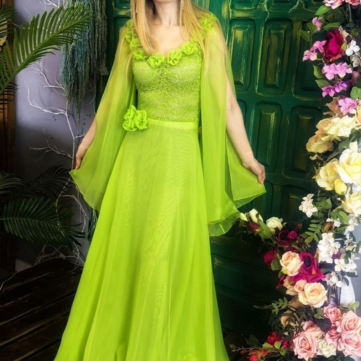 Уникальное светло-зелёное платье со шлейфом — создано для тех, кто мечтает стать героиней волшебной сказки.